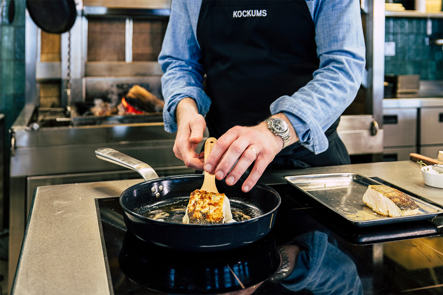 Vi på Kockums Jernverk har länge älskat kolstål för dess utmärkta stekegenskaper och den jämna värmefördelningen som ger full kontroll vid matlagningen. Men vi såg också behovet av en panna som är mer tålig mot syrliga råvaror, utan att tumma på det vi älskar med kolstål. Resultatet är vår nya Allroundpanna, en unik kombination av kolstålspanna och emaljerad panna.